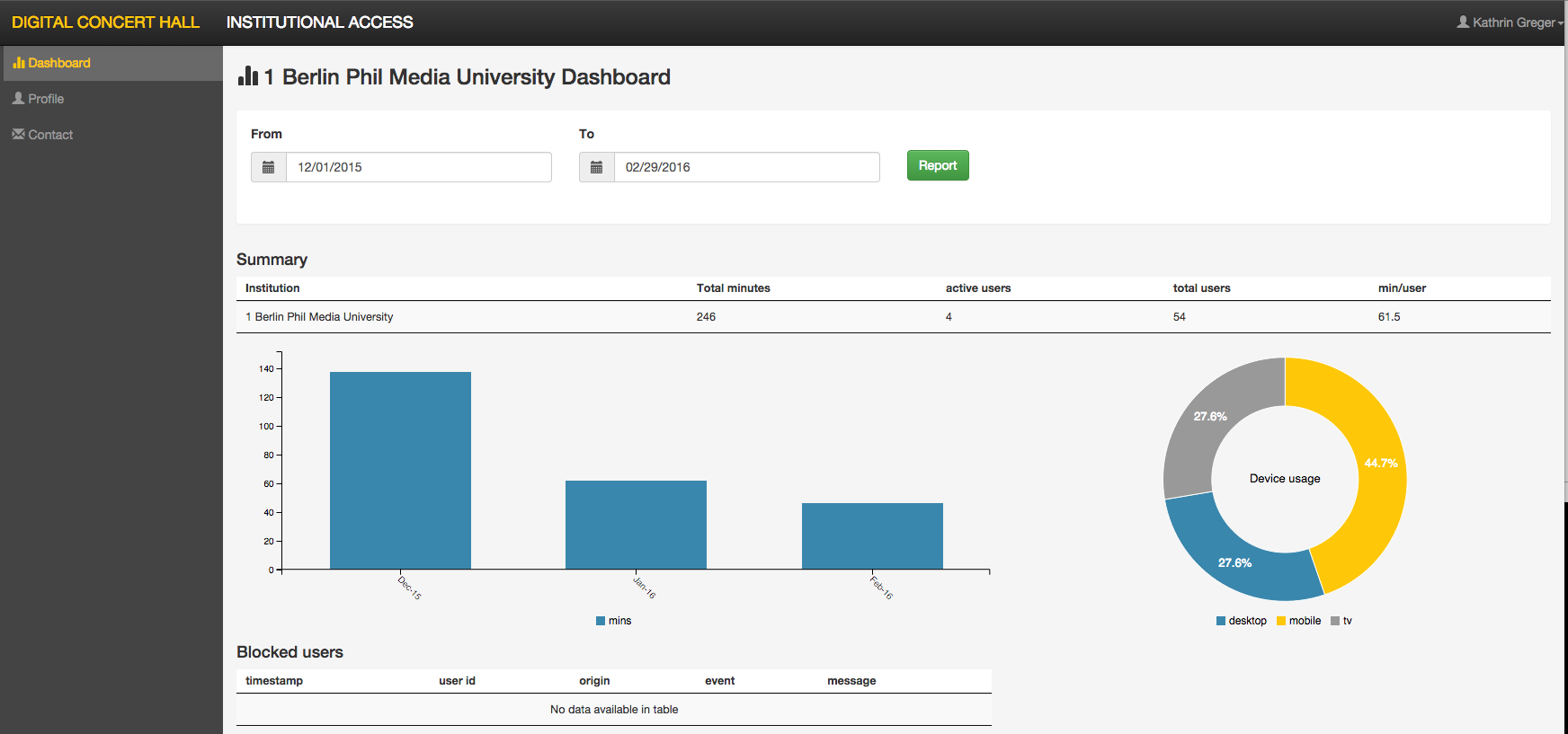 Yes, we will grant you access to a back-end for administrators of the institution. We provide information on the number of registered users, the number of active user, device usage, streamed minutes and blocked users.